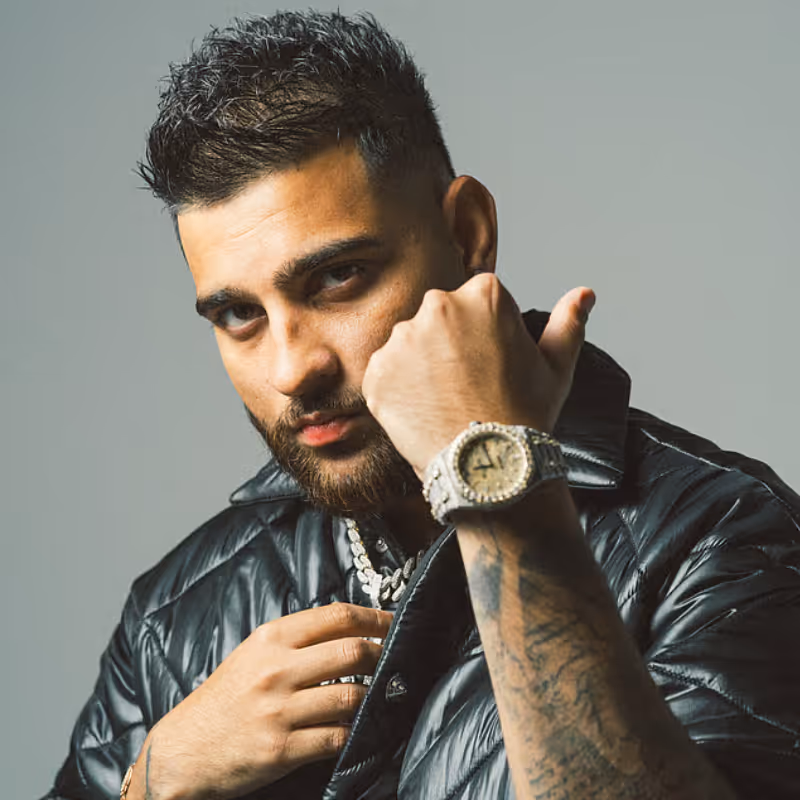 Karan Aujla is a Canadian-Punjabi singer, rapper, and lyricist celebrated for his unique voice and lyrical storytelling. His music blends emotional depth with bold modern production, earning him international recognition. He often complements his sharp style with high-end pieces like the Richard Mille RM 30-01.