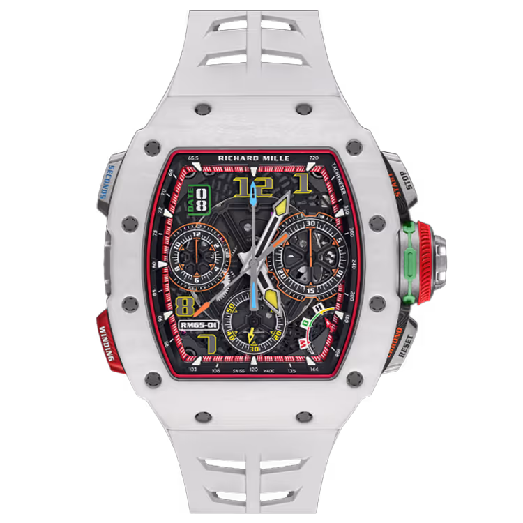The Richard Mille RM 65-01 is a masterclass in mechanical complexity, designed to deliver precision, durability, and high-speed performance. As one of the brand’s most technically advanced chronographs, the RM 65-01 embodies the spirit of modern sports watchmaking, pushing boundaries in functionality and material innovation.